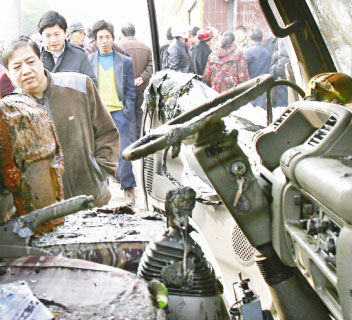 餐館違章占道,城管人員前來執法,不料店主抱出一個燃著的煤氣罐進行威脅。僵持中,煤氣罐越燒越熱,店主把持不住,扔下煤氣罐跑開,燙手的煤氣罐滾至城管執法車下,將車輛燒毀。昨日上午9時30分,武漢武昌中北路上出現了驚心動魄的一幕,隨后趕到的消防部門將火撲滅,幸無人員傷亡。