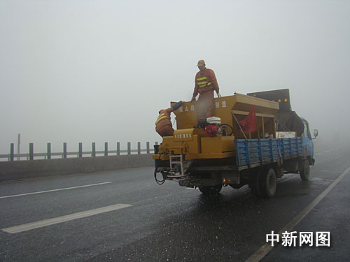 中新網(wǎng)韶關(guān)12月29日電(馮昶 李凌 李軍 廖躍華)隨著北方強(qiáng)冷空氣的不斷南下,地處高寒地帶的廣東京珠北高速公路部分路段已連續(xù)出現(xiàn)雨霧、低溫、冰凍等惡劣天氣。為確保惡劣天氣下各項應(yīng)急處置措施的科學(xué)有效,減少惡劣天氣對交通管理工作的不利影響,12月29日上午,廣東京珠北路政大隊和韶關(guān)交警高速公路大隊等多部門,聯(lián)合在廣東京珠北高寒路段進(jìn)行了惡劣天氣應(yīng)急預(yù)案的演練。