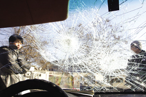 經清點,包括警車在內,共有8輛車的玻璃被砸。事后,車主們到派出所做了筆錄,均稱不認識該男子。民警最初懷疑該男子精神有問題,后經聯系他的家人,才知道他原是附近工地工人。該男子稱,他是河北張家口人,最近因經常感冒無法上班被工地辭退,雖然已結算了工資,但他也丟了工作,一時沖動跑到街上砸車泄憤。(記者 任冠軍)