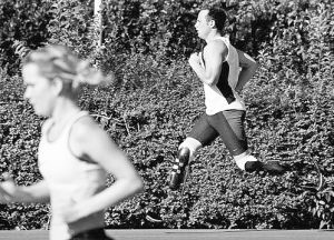 南非體育科學研究所的羅斯·塔克(RossTucker)持有類似觀點。他還指出義肢的另一特性:從來不會感到疲憊。不同于木腿簡單的支撐功能,在體重壓力作用下,運動義肢會在接觸地面時彎曲,然后在換步時彈開,從而把運動員垂直施與跑道的壓力轉化成水平方向的動力。