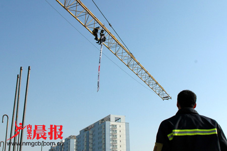 昨日上午9時30分, 在新城區(qū)新華大街富邦商務(wù)中心建筑工地上,兩名河南籍農(nóng)民工爬到距地面50米的吊臂上,欲追討欠薪。他們說施工方拖欠他們十幾萬元工錢。事發(fā)后,民警及時趕到現(xiàn)場,緊急聯(lián)系工程負(fù)責(zé)人。與此同時,呼市勞動部門也介入調(diào)查處理。4個小時后,這兩名農(nóng)民工才從塔吊上下來。