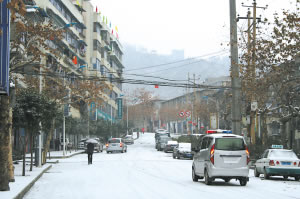 城口境內(nèi)大雪昨天呈加大趨勢(shì),昨天一大早,城口縣城居民發(fā)現(xiàn),所有街道已被積雪覆蓋;縣城自來水管網(wǎng)被冰凍,無法供水,居民紛紛將干凈的積雪放進(jìn)鍋里,化雪為水煮飯、洗衣。當(dāng)?shù)貧庀蟛块T昨天稱,今天明天城口境內(nèi)仍有零星小雪。城口縣公安局指揮中心昨天晚上說,沒有接到大雪造成房屋垮塌、人員傷亡的報(bào)告。