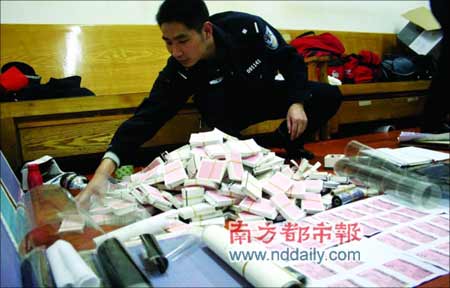 1月9日,春運尚未開始。中午時分,正在廣州火車站準備登上火車回重慶的一名男子,卻被拒絕在了進站口!凹倨!”該男子很生氣,當即跑到廣州火車站派出所報案室,手持他花100多元買的“火車票”告訴民警說,這票是他在深圳龍崗區一家藥店購買的!罢婕倨!”值班民警甄別重慶旅客手中的假票后,初步判定案情緊急,當即向上級匯報。當天,廣州鐵路公安處指派其刑警支隊廣州站大隊,成立專案組。
