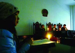 “喲,又停電了。”昨天,長沙市芙蓉區法院立案庭副庭長徐奕來到辦公室,電還沒來,她心里“咯噔”了一下:事先已通知一起交通事故案的雙方當事人前來開庭,但沒電法庭光線太暗,且不能用電腦進行庭審記錄了,按道理是無法開庭的。看著站在法庭門口冷得直哆嗦的當事人、代理人和律師,想到躺在病床上因車禍成植物人的受害者還等錢治病,徐奕決定點蠟燭開庭。