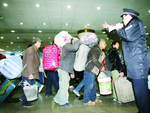昨日下午4時,北京西站已對候車乘客采取限流措施,車站候車大廳內人頭涌動。大屏幕上顯示,發往廣州、昆明、南昌等地的10余趟列車晚點,屏幕下,一些乘客焦急地仰望著。