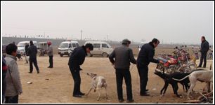 上午11點,場子里還是空蕩蕩的。漸漸地,許多男女賭徒或開車,或騎著自行車拉著狗相繼趕來。中午,一輛車號為“陜-08365警”的警車趕到現(xiàn)場,兩名警察各牽著一只狗走向“賽場”。