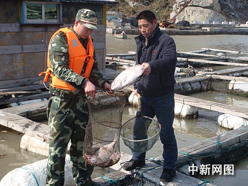 浙江溫州南麂島海域大量養殖魚被凍死(圖)