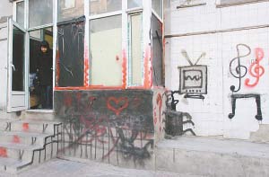 “那間屋子的窗戶上貼著黑紙,外墻壁上還噴畫著奇怪的圖案,寫著‘請勿偷看、男士禁入’的字樣!這間屋子挺恐怖。”昨日下午,有長春市民向本報(注:城市晚報)反映此事,記者采訪發現,這間恐怖的屋子是挺奇怪,原來它是一個專門給女同性戀拍照的攝影棚。