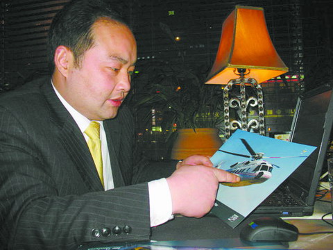 譚吉方說,目前四川已有五六個老總對他的產品表示出濃厚的興趣,他正在向總部申請,籌備今年年內在西南地區舉行一次個人商務機的試乘試駕,讓西南富豪們近距離感受一下飛的生活。(見習記者鄭常莉攝影報道)