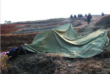 “我們這里一架飛機昨天墜毀了,駕駛員被送到縣里的醫院搶救,生死未卜!弊蛉丈衔,記者根據線索,驅車趕往駐馬店市泌陽縣銅山風景區,見到了墜毀的飛機。有幾人看守著現場,飛機已經被人用帆布蓋住。帆布旁有夜里看守人員用的被子。