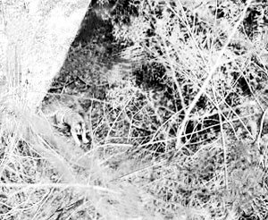 記者昨日幾經輾轉,目睹了吳華當時所拍攝的錄像帶,出現“華南虎”的鏡頭共19秒,錄像中的大型貓科動物與年畫中的華南虎十分相似。