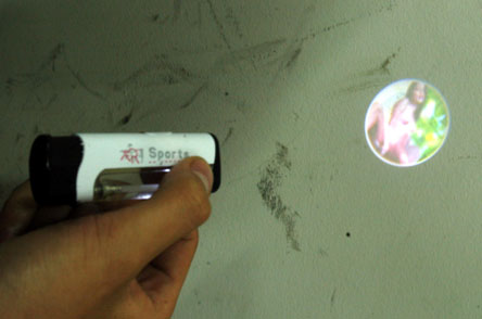 記者注意到,“艷照”打火機(jī)側(cè)邊上有個白色的小開關(guān),底座還鑲有一個很小的幻燈鏡。只要輕推開關(guān),就會從幻燈鏡里射出一道光束,當(dāng)光速投在稍微陰暗的物體上,就形成了一幅裸體圖。這些打火機(jī)表面上沒有印有任何有關(guān)生產(chǎn)廠家和生產(chǎn)日期的信息,只有一些簡單的圖案和一英文單詞。