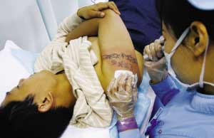 為證明自己深深的愛(ài),27歲的張曉光(化名)將女友的名字刺上了左手胳膊,但兩人終究黯然分手。忍受了文身給自己生活、工作帶來(lái)的諸多不便后,前日張曉光來(lái)到重醫(yī)附一院整形美容科,決定將舊痕徹底清除迎接新生。