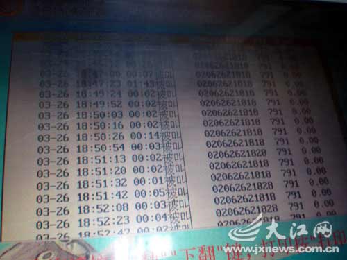 昨日下午,龔先生通過移動公司的自動查詢系統查詢,發現自3月19日至本月1日,“0206262”給他打來的電話有上千個之多,其中3月26日最為瘋狂,一天有100余個電話打入,僅當天18時45分至18時52分這一時段,就有17個騷擾電話輪番“轟炸”,來電號碼以“02062621818”居多。龔先生無奈地說,他的日常生活已受到嚴重影響。