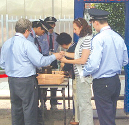 記者在現場看到,由于派出了大量人力積極進行疏導,人們沿著制定好的線路魚貫前往入口安檢處和海外采購商證件辦理處,盡管有時人流行進緩慢,但總體上并沒有出現滯留現象。所有進出展館人員的出入證都前所未有地印有防偽標志,照片也都是電腦打印上去的,防止不法份子更換照片,所有出入者都將通過“民航式”安檢:即參會人員進入廣交會展館,必須持有進館證件并隨身攜帶護照或身份證以備現場查驗;民航禁止攜帶的液態物品、打火機、火柴等物品,一律不得帶入展館,進入控制區的所有車輛,也全部實行安檢。