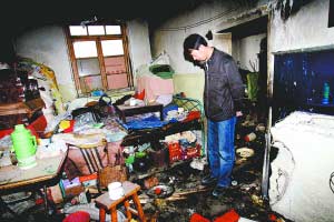 昨日7時許,記者在事發現場看到,發生汽油爆燃的平房分為兩間,墻壁和桌面上到處是焦黑的熏痕。平房孤零零立在一片拆遷廢墟之上,周圍只零星散布著其他幾棟平房。