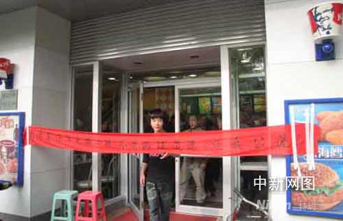 在派出所3次出警無效下,憤怒的陳女士做出了在肯德基店門口 拉橫幅攔顧客的舉動。而肯德基方面更是以鎖住店門把陳女士連同當時還在就餐的10幾名顧客一起困在了店堂里。時間長達一個多小時。最后還是在圍觀群眾的憤怒聲中才打開店門。