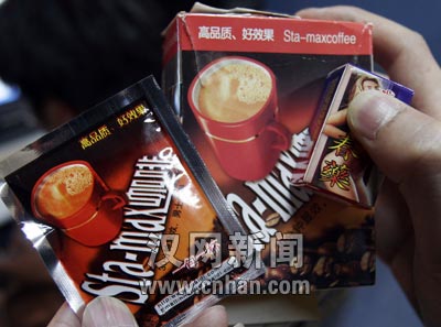 火鳳凰成人保健用品公司的貨架上還擺了一種催情咖啡,沒有廠名、廠址,方形外包裝與雀巢咖啡十分近似,每盒有8小袋。說明稱每袋催情咖啡對入150毫升開水沖泡,30分鐘見效。店員稱其口感與速溶咖啡類似,批發價每盒18元。