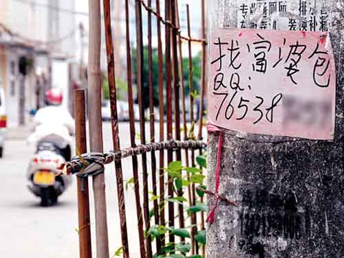 當“阿華”知道記者是從他貼的街頭小廣告上得知其QQ號碼時,顯得有些得意:“我不僅在街頭貼廣告,還印了大批的名片插到小轎車的車窗上,要我提供服務,隨時可以聯系。”