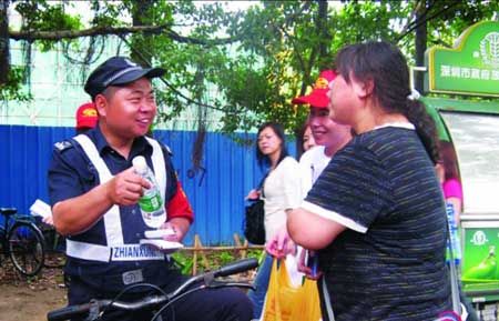 五一勞動節當天,網友“柳的妞”等組織“給交警送瓶水”公益愛心活動,他們在車公廟、華強北等地向市民募集瓶裝水,然后分發給路上遇到的交警、城管、警察、環衛工人等。據粗略統計,當日在街頭募集和送出去的礦泉水接近200支。