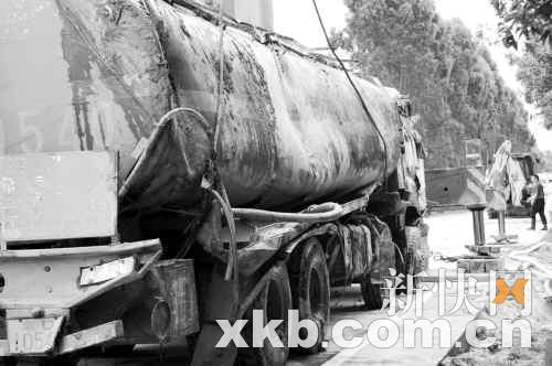 出事車輛所屬的運(yùn)輸公司派來(lái)了一輛油罐車及搶修隊(duì)到事發(fā)地進(jìn)行倒灌。由于硫酸罐車嚴(yán)重側(cè)翻,加上水泵壓力,該公司搶修隊(duì)經(jīng)過(guò)2個(gè)多小時(shí)的幾番嘗試后,仍未能實(shí)施倒灌救援。
