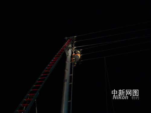 消防隊(duì)員到達(dá)現(xiàn)場(chǎng)后才發(fā)現(xiàn)是一名小偷因偷高壓線,被困在電線架上,人已經(jīng)沒有生命跡象。公安行偵大隊(duì)、派出所、電力先到場(chǎng)后都無能為力,需要消防救援。消防指揮員通過觀察現(xiàn)場(chǎng)和詢問電力部門技術(shù)后,馬上出了一套方案用15米金屬拉梯救人,拉梯馬上起架,同時(shí)用搶險(xiǎn)救援車照明,但由于地面有落差,拉梯不好起架,第一套方案結(jié)束。這時(shí)電力部門在旁邊建議,可以用高壓電線桿的攀手到達(dá)目的地救人,但電力部門人員又沒有能力上去。消防接受任務(wù)后,馬上決定派出兩名優(yōu)秀的消防隊(duì)員上去營(yíng)救。但由于距離比較高,又擔(dān)心高壓電,指揮員決定親自上去營(yíng)救。
