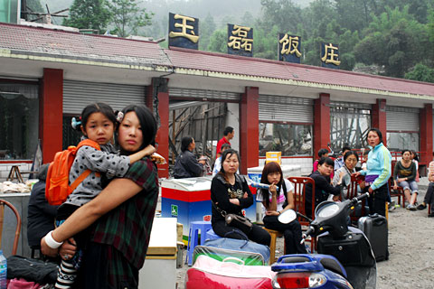 5月12日16點(diǎn)58分,紫坪鋪鎮(zhèn)都江村村民到開(kāi)闊地躲避余震