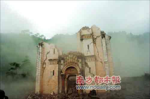 ●5月12日14時(shí)41分。地震剛剛發(fā)生,塵土彌漫,百年古跡變成廢墟。