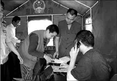昨天,在什邡市區(qū),開業(yè)的商店在增多,交通運輸在恢復(fù),政府機關(guān)在堅持上班,受災(zāi)群眾在一步步得到安置,工作生活秩序正在走向正常。維持和捍衛(wèi)著秩序的法院,在受災(zāi)群眾中間,用帳篷搭建起第一座災(zāi)后臨時審判庭。