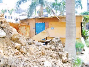 這個窩棚看上去已經廢棄多時,旁邊工地的泥土幾乎把大門都封住了。不過門上還掛著一個門牌,寫著“114”號。該路段附近沒什么人行走,旁邊工地的一個工人告訴記者,一直沒見過這房子有人出入。