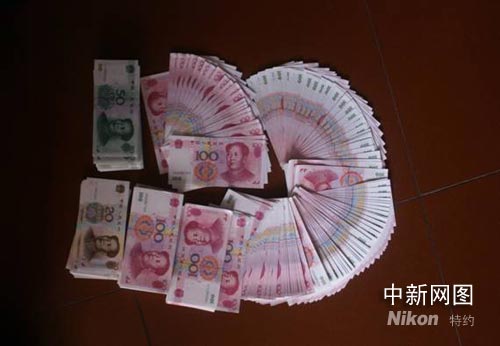 警方當(dāng)場(chǎng)收繳的幾可亂真的假幣。