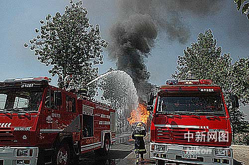 接到報警后, 消防隊員火速趕赴現場,分派9輛消防車對失火車輛進行撲救。中午12時30分記者離開現場時火勢已經得到控制。