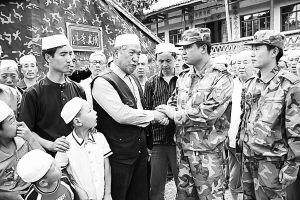 悠長的誦經(jīng)聲在“帳篷清真寺”四周縈繞。蒿溪回族鄉(xiāng)鄉(xiāng)長魏光忠正巧上山來查看危房。“當年,紅軍經(jīng)過此地,與當?shù)鼗亍h群眾結(jié)下了深厚的情誼。今天,‘民族大團結(jié)、軍民一家親’的動人情景在蒿溪再現(xiàn)。”魏光忠告訴記者,連日來,部隊官兵搜救搶險不懼艱險,運送物資不知疲倦,還專門開設了多個“清真救助站”。