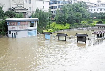 6月9日下午5時,兩江四湖的文昌橋碼頭被洪水淹沒。本報記者 鄧振福 唐曉燕攝