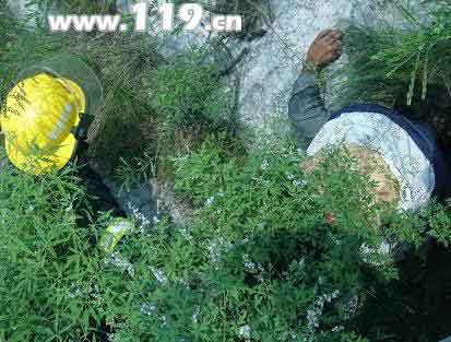 經過艱難的努力,兩名戰士攀到側面,沿著縫隙勉強往下去,消防隊員急忙把救援繩拋給懸于半空的戰士。在大家的齊心協力下,終于把這名婦女就上來,救護車馬上把傷者送到醫院治療。