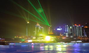 。ㄖ貞c)市城市照明管理局的曾科長表示,6月21日20點(diǎn)40至21點(diǎn)之間,朝天門廣場周圍進(jìn)行了激光燈表演,但是沒有添加燈光效果的圖案和文字。