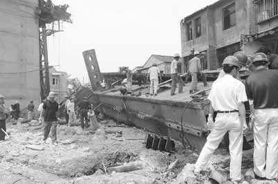 記者看到,這段鐵路橋呈南北走向,向北放眼望去,20多米高的鐵路高架橋像巨龍一樣延伸開(kāi)去。往南看,僅剩200多米的橋面尚未鋪好。“都快完工了,誰(shuí)知道還會(huì)出這事。”今年四十多歲的老龍租住的房子在鐵路的東側(cè),距離倒塌下來(lái)的模架最近只有十幾米,中間隔著一條三米多寬的小路。前天上午9點(diǎn)多,老龍從雙嶼鎮(zhèn)農(nóng)貿(mào)市場(chǎng)賣(mài)完菜剛走進(jìn)二樓的房間,就聽(tīng)見(jiàn)一陣“嘩啦啦”的巨響,腳下的地板也在顫抖。“地震了!”老龍沒(méi)有多想,轉(zhuǎn)身奔到樓下,才發(fā)現(xiàn)原本掛在鐵路橋上近50米長(zhǎng)的移動(dòng)模架不見(jiàn)了,橋墩兩側(cè)的房屋被地上騰起的煙塵全部遮住,只有橋墩的頂部還露出了一小段。煙塵持續(xù)了20分鐘才逐漸消散。“如果事故提前一個(gè)小時(shí),死的人會(huì)更多。”據(jù)老龍介紹,發(fā)生事故的那個(gè)路段是交通要道,鐵路東側(cè)的居民買(mǎi)菜,都要穿過(guò)鐵路橋,到橋西側(cè)的雙嶼鎮(zhèn)農(nóng)貿(mào)市場(chǎng)。上午8點(diǎn)左右,正是居民買(mǎi)菜和上班的高峰期。“平常我們也常常從下面穿過(guò),只是擔(dān)心上面會(huì)掉下些小石頭或者水泥塊,沒(méi)有想到這下全掉下來(lái)了。”另一位居民告訴記者。