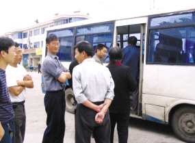 通知發出的第3天,進入茅山集鎮的路口突然出現手持警棍的12名執法隊員,他們一字排開,將路口封死,嚇得客車連忙下客,將乘客丟在雨中,匆匆回頭。第4天,司機們索性將車停在離集鎮入口100米的“高璟超市“門前,但執法隊仍然進行驅趕,無奈客車只好再退3.5公里,停在茶場一隊。見車主還是不交“保證金”,執法隊繼續干預,將客車又逼退1.5公里左右,停在茶場二隊。此地已經距離茅山6公里左右,到了后白鎮境內。但心有余悸的司機還是不放心,又向后退出1公里,索性停在茅西小鎮上。