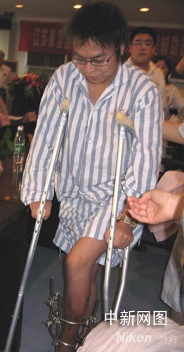 在該省人民醫(yī)院愛心病房,蘇波的左腿因脛腓骨骨折安裝了鋼筋固定,坐下時為不碰觸左腿,他總是用手輕輕托住關(guān)節(jié),有些費力。但康復(fù)技師周秋敏對他很有信心:“蘇波很勤奮,每天都忍痛做康復(fù)訓(xùn)練,很是刻苦”。接受了一個多月康復(fù)治療,加上自身積極配合,蘇波今天終于要回家了——該醫(yī)院第一個腿部骨折康復(fù)并出院的四川地震傷員。