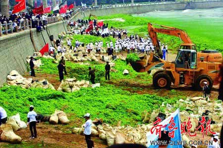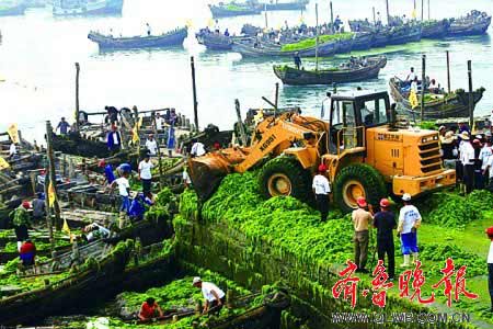 自接到預(yù)警信息后,青島市第一時(shí)間啟動(dòng)了應(yīng)急監(jiān)視監(jiān)測(cè)。截至28日,青島市政府動(dòng)員全市上下投入滸苔清理工作,從海上、潮間帶、岸邊進(jìn)行全方位的打撈清理,努力將滸苔的不利影響降到最低,為舉辦奧帆賽創(chuàng)造良好的海域環(huán)境。截至目前,已有數(shù)萬人、千余艘各類船只、數(shù)十臺(tái)裝運(yùn)機(jī)械投入到清理行動(dòng)中,清理滸苔數(shù)量超過10萬噸。