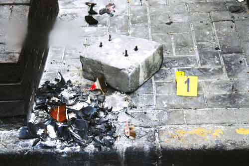 經(jīng)警方初步偵查,犯罪嫌疑人楊某,男,28歲,北京市人。當(dāng)天上午,楊某攜帶匕首、榔頭、噴霧劑、防塵面具等,在閘北區(qū)一綜合行政辦公大樓門口先點(diǎn)燃并拋投了8個用啤酒瓶自制的燃燒瓶,大門保安看到后迅速上前制止,遭楊威脅并被其用攜帶的匕首刺傷。隨后,楊即竄入辦公大樓,在底樓大廳和閘北公安分局治安支隊(duì)值班室用匕首刺傷4名正在辦公不及防備的民警。之后,楊又先后竄至10樓、11樓和21樓,在幾個不同的房間內(nèi)趁民警不備,用匕首刺傷5名民警。閘北