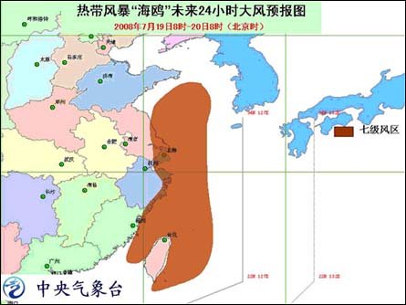 中新網7月19日電 中央氣象臺7月19日06時發布臺風消息:今年第7號強熱帶風暴“海鷗”于昨天晚上在福建省霞浦縣境內減弱為熱帶風暴,今天早晨5時其中心位于浙江省泰順縣境內,就是北緯27.6度、東經119.8度,最大風力有8級(20米/秒)。預計,風暴中心將以每小時15-20公里的速度向北偏東方向移動,強度繼續減弱。