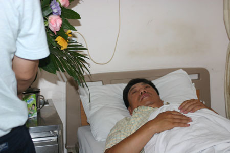 躺在黃河中心醫(yī)院的鄭州交警一大隊(duì)民警賈世良鼻子、嘴巴仍在痛疼,而且頭暈不止,聽力衰退,腹部一個(gè)直徑兩厘米的血印還沒有消去,手上、胳膊上、脖子上、臉上都有一道道的血痕。“那3男3女已經(jīng)打紅了眼,見誰打誰,而這時(shí)我們的老交警還是勇敢地沖了上去,面對(duì)打人者雨點(diǎn)般的拳頭和聲聲叫罵不還手不還口……我們?yōu)檫@樣的民警感到驕傲和自豪”。來看望賈世良的市民王先生感慨地說:“一個(gè)51歲的老交警風(fēng)風(fēng)雨雨在街頭了幾十年,什么違法違紀(jì)的場(chǎng)面沒有經(jīng)見過,可面對(duì)毆打和辱罵不還手不還口,這需要多大的克制和忍耐啊!這說明了咱鄭州警察執(zhí)法文明,素質(zhì)過硬,是一支完全可以讓全體市民放心的文明之師。”