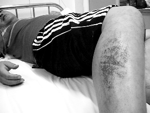 昨日,在積水潭醫院等待手術的齊景華說,當時車速太快,他還沒來得及反應就被“撞飛了”。