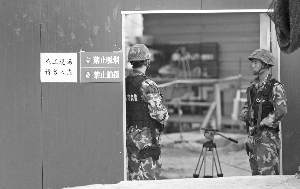 武警戰士荷槍守衛 快報記者 施向輝 攝