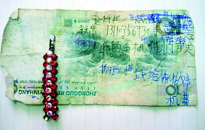 求救用的拾元紙幣和發卡。