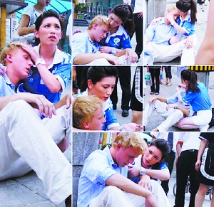8月11日,一位網友在某論壇里發了個名為《我拍到最美的奧運志愿者美眉》的帖子,并附有多張現場照片。發帖人描述說:當時一金發碧眼的老外走得挺慢,我沒怎么注意。一回頭那老外坐地下了,耷拉著個腦袋。旁人圍了過來,議論說可能是中暑了,這會兒過來一漂亮美眉,還是個奧運志愿者,又是摸頭又是詢問的。老外當時瞳孔放大,很嚇人的樣子!美眉看樣子也有點發懵,不過很快就指揮大伙打電話什么的……周圍還有人拿出風油精,附近飯館經理服務員全來了,還幫忙倒水。那志愿者美眉,我估計還有點兒經驗,又掐人中又揉太陽穴地折騰半天,可把她急壞了……隨后志愿者美眉用英文問清老外的住址后要送老外回去,估計怕老外走半道再犯了啥的,旁邊大家都夸她,人家還挺低調扶著老外就走了。
