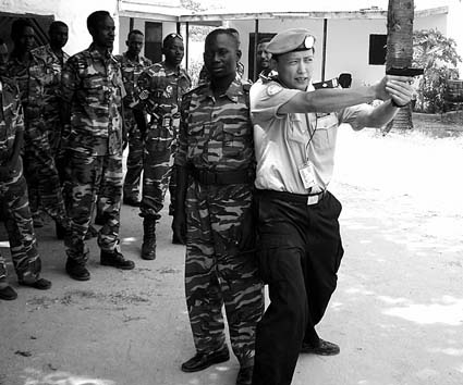 張良告訴記者,在與當地警察和當地人接觸中發現,他們喜愛中國功夫,中國武打電影明星他們都非常熟悉,經常有人向他請教中國功夫。“非洲人體質非常好,剛開始一些新警學員看到我,總想與我切磋一下。在試過幾次‘貼身摔’之后,他們對中國功夫心服口服。”張良笑著說。在教授防衛術之余,很多當地朋友都纏著他傳授幾招中國功夫,但往往一個在中國常見的“倒功”就讓他們驚訝半天。中國功夫拉近了張良與當地警察的距離。