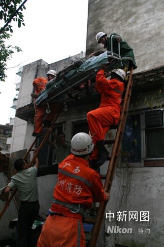 14時20分,欽州市消防支隊接到報警稱,前進路武警招待所旁有一人跳樓被卡。支隊接到求助電話以后迅速調集特勤大隊兩臺消防車前往救援。隨后,消防官兵利用掛鉤梯迅速上到一平頂房樓頂,發現一名男子躺在兩堵墻之間,一條腿卡在墻縫里,并有凝固的血跡。該男子雙眼緊閉,表情痛苦。消防官兵一邊救援一邊與其說話,試圖減輕被困男子的痛苦,但任憑消防官兵怎么說話,該男子始終沉默。消防官兵迅速將其從墻縫里抬了出來,并用接力的方式將其抬下了地面。