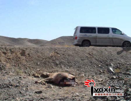 在人們歡慶十一之即,卡拉麥里保護(hù)區(qū)內(nèi)一只國(guó)家一級(jí)保護(hù)動(dòng)物野驢慘死于216國(guó)道邊,它被車撞死后,又被人的砍去后半身,腸胃留出體外,群蠅圍繞,慘狀讓人不忍目睹。